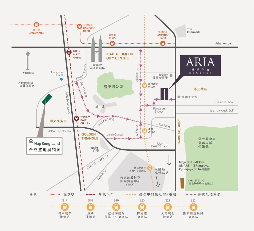 位置 Aria 位居市中心的绝佳位置,高素质的服务标准及宽阔的空间,使之成为理想的安居之处。 使用Google Maps浏览产业位置 前往吉隆坡双峰塔的车程只需要 2.7公里 前往柏威年廣場的车程只需要 3.4公里 前往柏吉隆坡塔的车程只需要 5.2公里